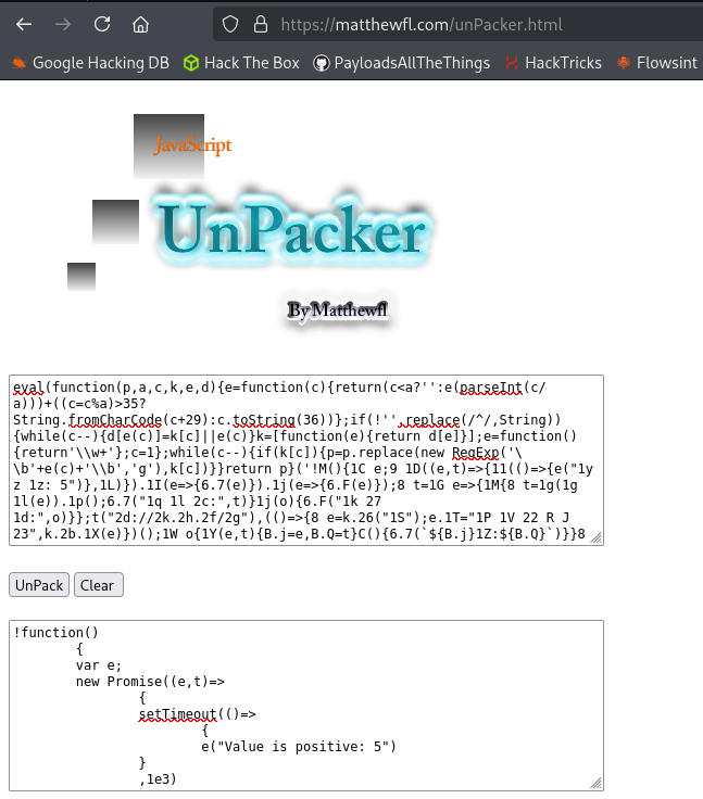 Posteriormente, utilizamos UnPacker para desempaquetar completamente el script y obtener el código original: